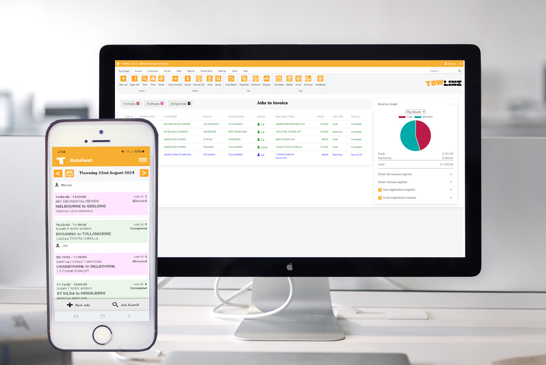 Towline takes the complexities out of running your towing and transport business.